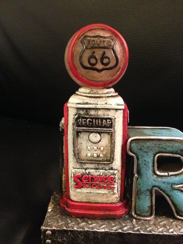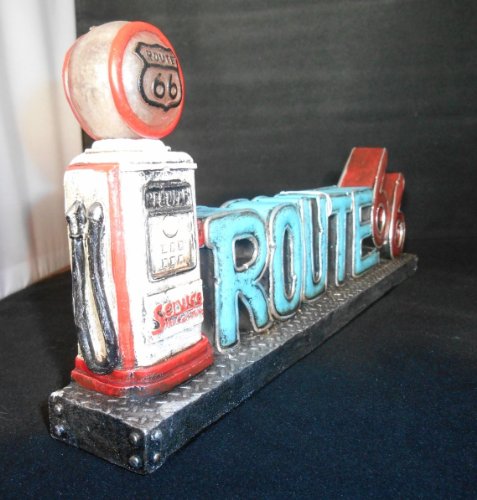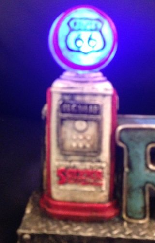 Vintage Style Route 66 Stand Up Sign With LED Gas Pump Light