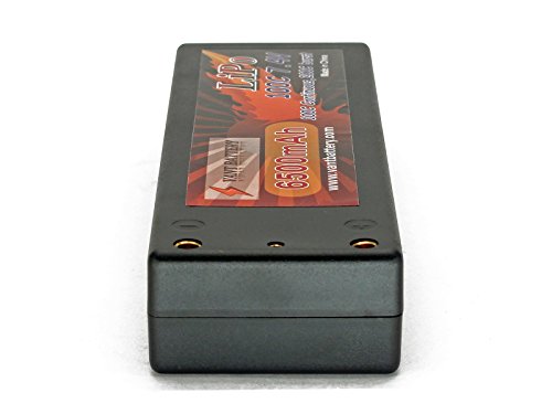 Features: True Capacity and C-Rating Thick 12AWG Discharge Leads Durable Hard Case Deans Ultra Connector JST-XH Balance connector 4mm Bullet Leads Capacity: 6500mAh Voltage: 2S /?2 Cell / 7.4v Discharge Rate: 100C Constant (650A) / 200C Burst (10 sec) (1300A) Charge Rate: 2C (13.0A) Watt Hours: 48.10Wh Weight: 10.4oz / 295g Weight w/ Wires Plug: 11.0oz / 312g Dimensions LxWxH: 139.2 x 46.6 x 24.7 mm Discharge Plug: Deans Ultra Connector Balance Plug: JST-XH Includes: 7.4V 6500mAh 2S Cell 100C-200C HardCase LiPo Battery Pack w/ 4mm Bullet Deans Ultra Connector Vant Battery Warranty w/ Lifetime Replacement Plan Equipment Needed: LiPo Balance charger capable of charging 2 cell LiPo batteries Equipment Recommended: LiPo Safe Charging Bag/Sack/Pouch, Cell Voltage Reader Safety Notes Warnings: LiPo batteries are potentially hazardous. Improper usage can cause fire or explosion. Charge and Store battery in LiPo-Safe Bag away from flammables on a concrete surface. Charge using a LiPo compatible Balance Charger ONLY! Never Charge above 4.2V per cell. Never Discharge below 3.2V per cell. Always use under adult supervision. The end-user is fully responsible for any results in using this battery pack. 0 |