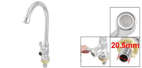 -. Feature : Product Name : Kitchen Sink Faucet;Overall Size (Approx) : 185 x 40 x 322mm/7.3" x 1.6" x 12.7"(L*W*T) / Spout Reach (Approx) : 175mm/6.9";Bar Dia. (Approx) : 18mm/0.7" / Water Outlet Dia.(Approx) : 20mm/0.8";Thread Dia. (Approx) : 20.5mm/0.8" / Color : Silver Tone;Material : Chrome Plated Brass, Plastic / Weight : 323g;Package Content : 1 x Kitchen Sink Faucet