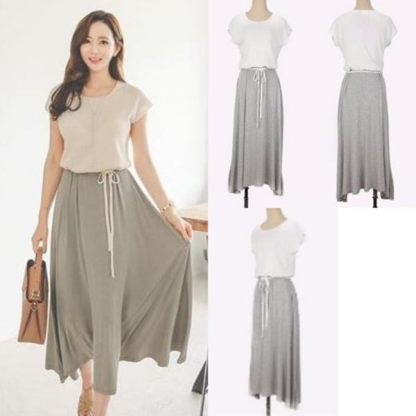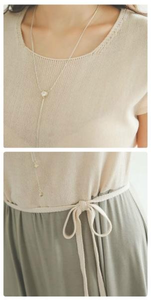 大人上品バイカラー ドローストリング・ウエスト 半袖 マキシ ワンピース