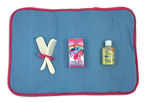 -. Feature : Diaper bag , accessory bag, a changing pad and a 101 piece starter set / A zippered pink mermaid clip-on, 12 Pampers Swaddlers diapers, 12 multi-use crib pads / 1 pack of Hies wipes, 50 disposable diaper baggies / A Nuby 4 oz. bottle, 1 receiving blanket, 20 plastic disposable bibs / 1 pack of Kleenex, 1 hand sanitizer, a brush and comb