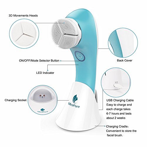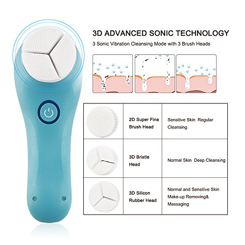 Electric Facial Brush, 3D Vibrating Sonic Waterproof Skin Exfoliating Cleansing System for Body and Face Deep Cleaning, Microdermabrasion Exfoliator with 3...