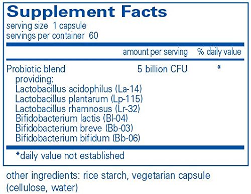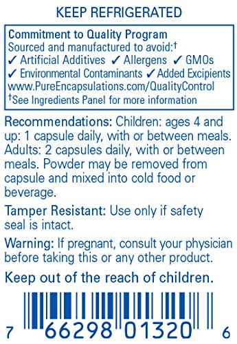 -. Feature : Blend of lactobacillus and bifidobacteria to support microflora balance, GI health and immune cell function. Promotes healthy microflora balance, GI integrity, bowel regularity and healthy immune cell function in children and adults. / REFRIGERATE: This formula requires refrigeration to maintain culture viability. / 60 Capsules / Pure Encapsulations recommends - Children ages 4 and up: 1 capsule daily, with or between meals. Adults: 2 capsules daily, with or between meals. Powder may be removed from capsule and mixed into cold food or beverage / At Pure Encapsulations, our products are free from: wheat and gluten; egg; peanuts; coatings and shellacs; GMOs; magnesium stearate; trans fats and hydrogenated oils; artificial colors, flavors and sweeteners; unnecessary binders, fillers and preservatives. Any product containing ingredients derived from allergens, such as soy, dairy or shellfish, is clearly labeled. All two-piece capsules are hypoallergenic and vegetarian.