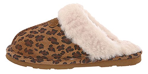 Product DescriptionR classic with a cow suede or shimmer luxe leopard fabric, full sheepskin collar, lining and footed, lightweight molded Eva outsole.0