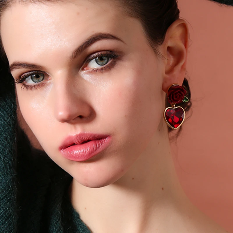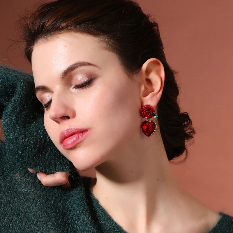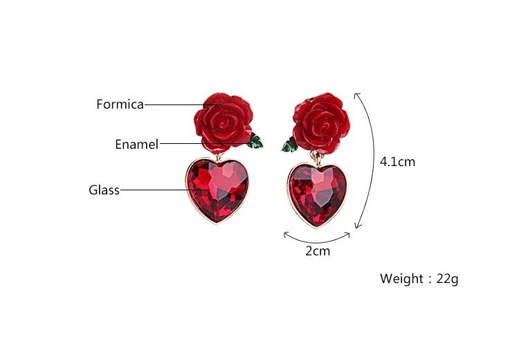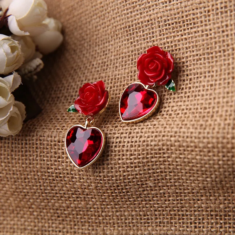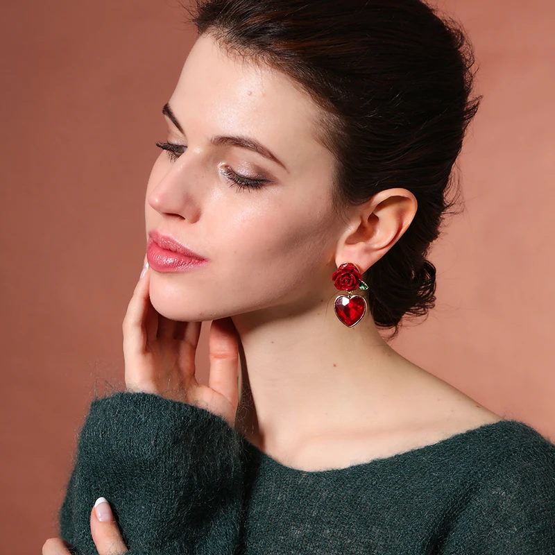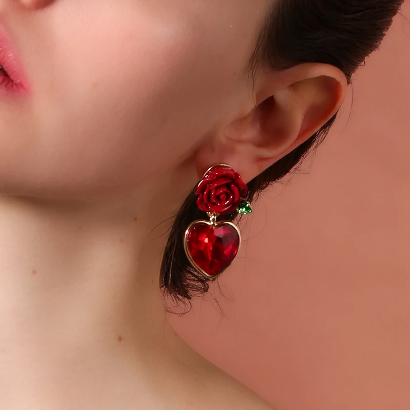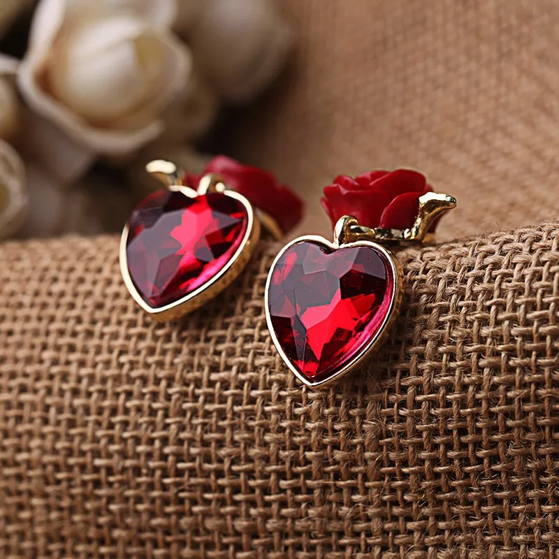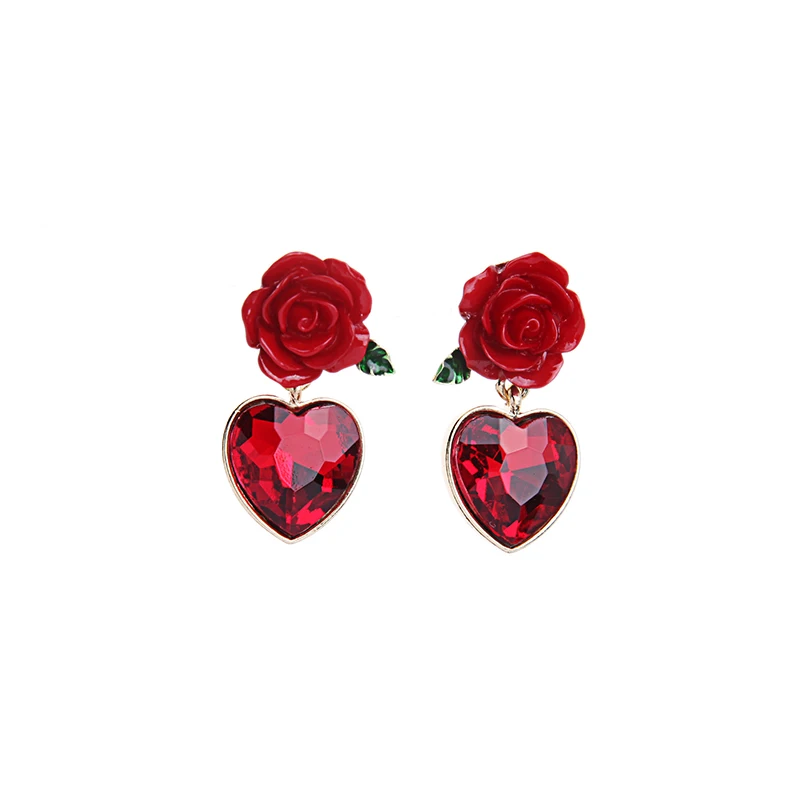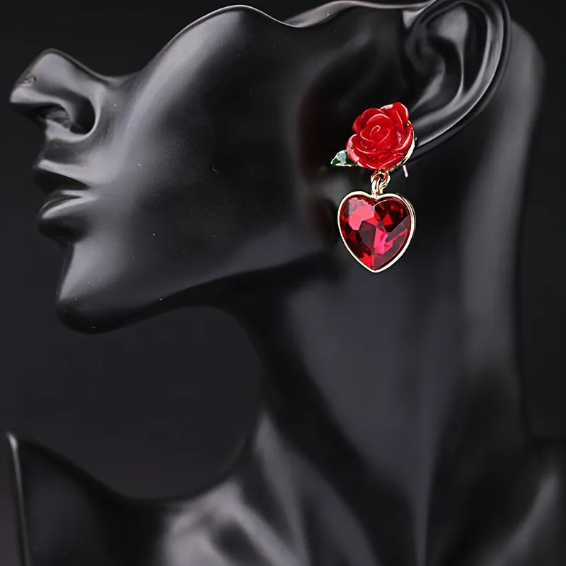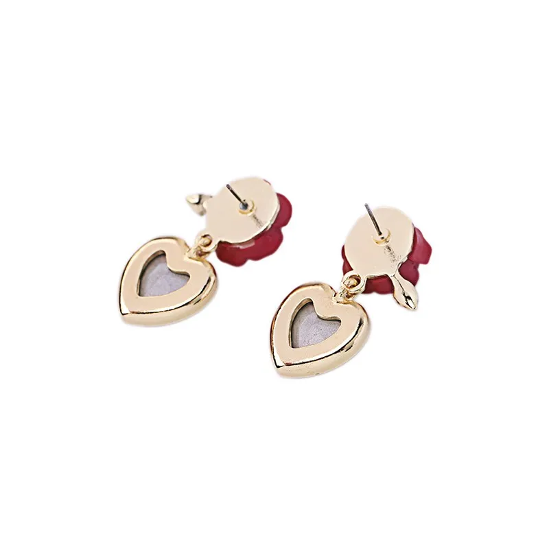Item type:High-end Women's Rose Flower Shape And Heart Pendant Stud Earrings