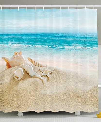 HommomH 60" x 72" Shower Curtain With Hooks Bathroom Anti-Bacterial Waterproof Ocean Beach Picture