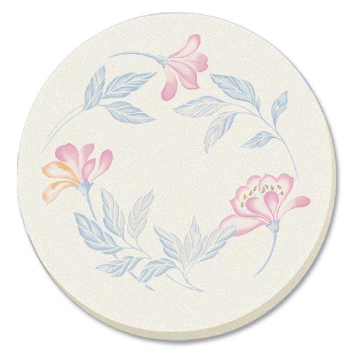 • The Pink Trio pattern from Corelle is featured on these absorbent coasters