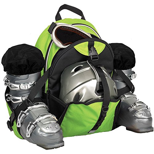 -. Feature : Side Padded Ski Boot Holders with Air/Water Drainage Grommets / Zippered Helmet Pocket with Mesh Gusset / Water Resistant Tarpaulin Bottom / Closed Cell Foam Padded Back / Contoured Adjustable Neoprene Comfort Shoulder Straps