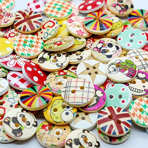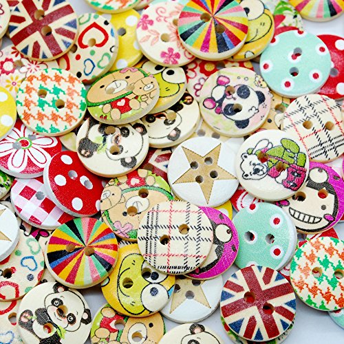 100pcs Mixed Wooden Buttons in Bulk Buttons for Crafts Button Round Colorful