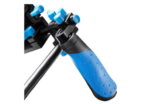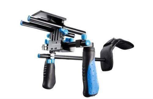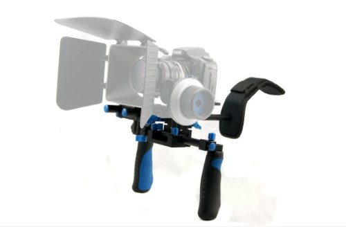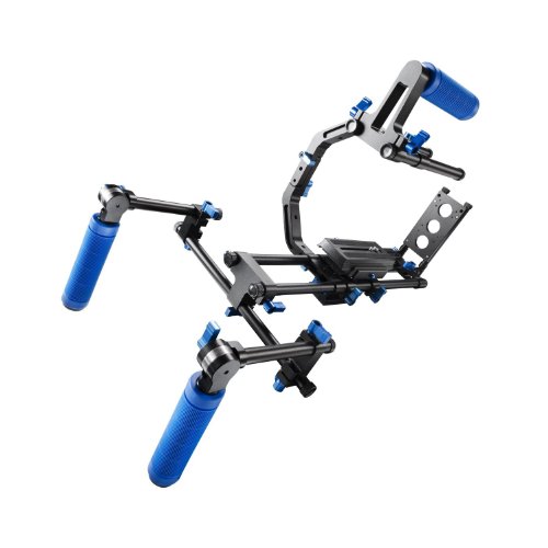 Das System kann auch professionelle Ausrustung hinzugefugt werden, wie Gegenlichtblende, Follow Focus, Sucher; Ein Jahr Garantie; Enthalt zwei Griffe, die Flexibilitat der Griffe, die fur Komfort konfiguriert werden konnen, erganzt.