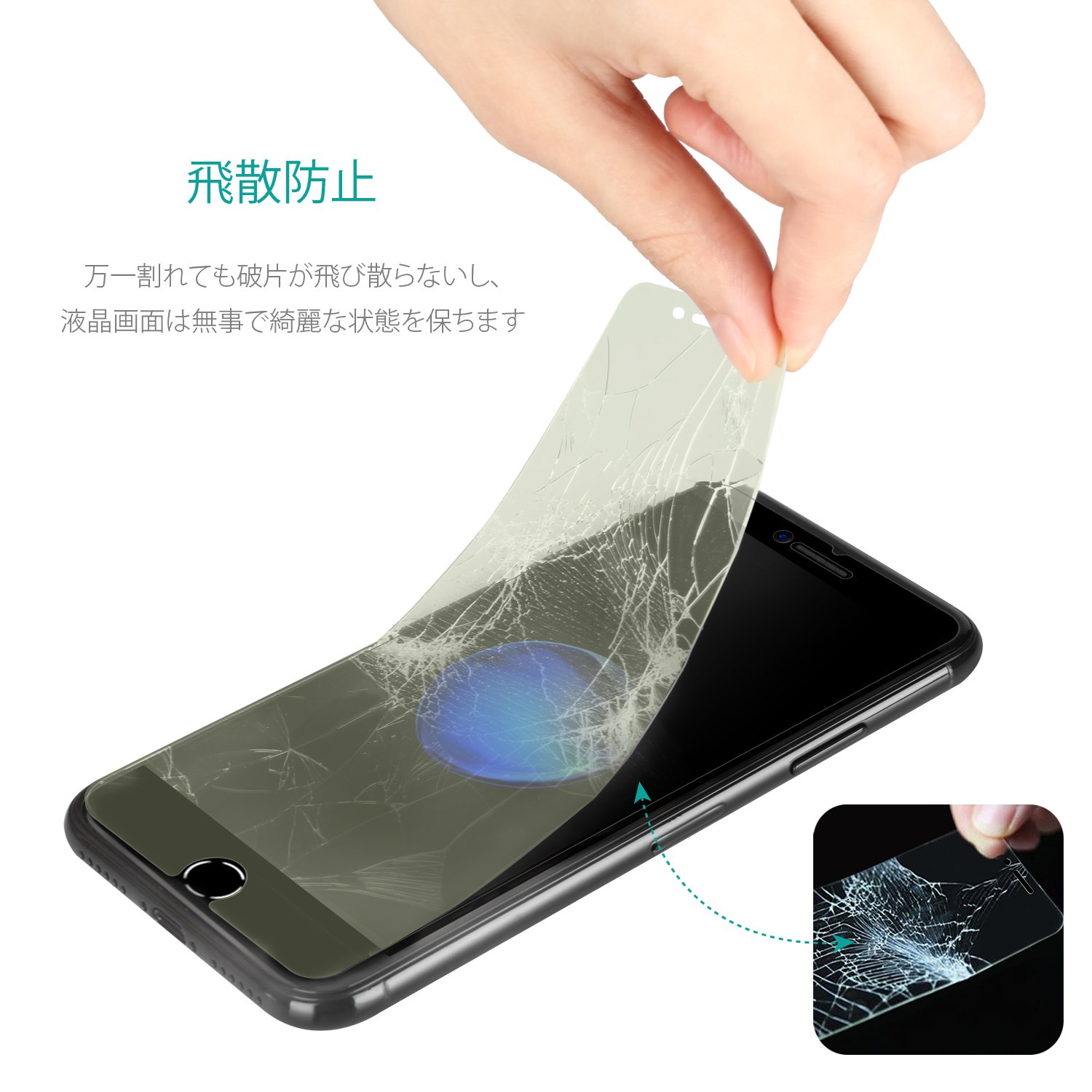 In case the glass is broken by scattering prevention processing, fragments will not scatter and the fragments will stick to the screen so we protect the user from injury while properly protecting the screen.