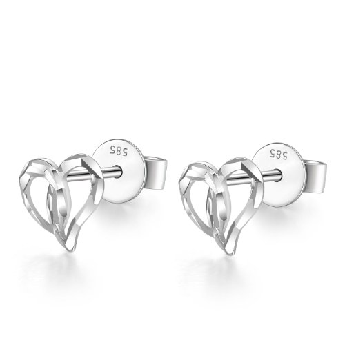 - Title : 14K Italian White Gold Diamond Cut Open Heart Stud Earrings, Women Girl Jewelry in Gift Box