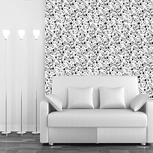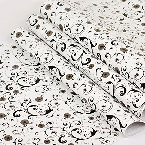 SimpleLife4U Black Vine Shelf Liner Self-Adhesive Contact Paper DIY Dresser Drawer Covering Sticker 17.7 Inch By 9.8 Feet