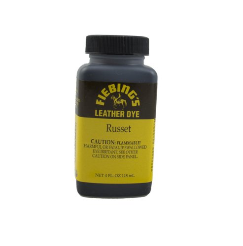 -. Binding : Office Product -. Brand : Fiebing -. EAN : 0700175601926 -. Feature : Fiebing's Permanent Leather Dye / For use on vegetable tanned or unfinished leather / Penetrates and dries uniformly / No Cracking or Peeling. PRODUCT IS FLAMMABLE. SHIPS VIA UPS / Can be mixed with other Fiebing's colors -. Label : Fiebing Company -. Manufacturer : Fiebing Company -. PackageQuantity : 1 -. ProductGroup : Art and Craft Supply -. ProductTypeName : ART_SUPPLIES -. Publisher : Fiebing Company -. Studio : Fiebing Company -. Title : Fiebing's Russet Leather Dye 4oz -. UPC : 700175601926