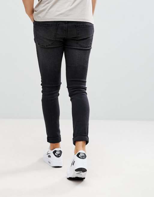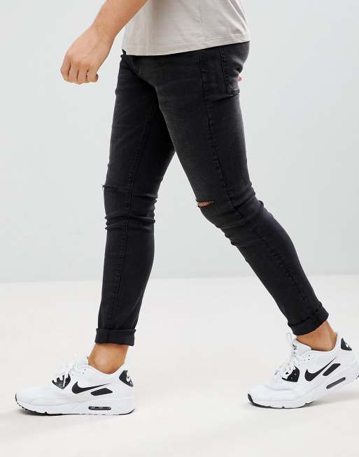 Pull&Bear Super Skinny Jeans With Knee Rips In Black
