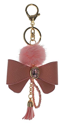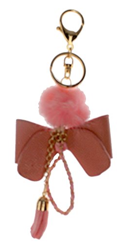 (T Square)/Accessories/Wallets, Money Key Organizers/DIRECT FROM USA/Pink Bow with Tassel and Fur Puff Key Chain Fob Phone Purse Charm Gold Toned