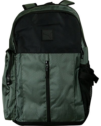 Puma provides the perfect performance products for athletes. Backpack features adjustable padded shoulder straps, a roomy main compartment with laptop sleeve, one front zip pocket, one middle zip pocket with organizer panel, one mesh exterior side pocket, a side compression strap, and carry handle. Measures 12''W x 19.5''H x 6.5''D.
