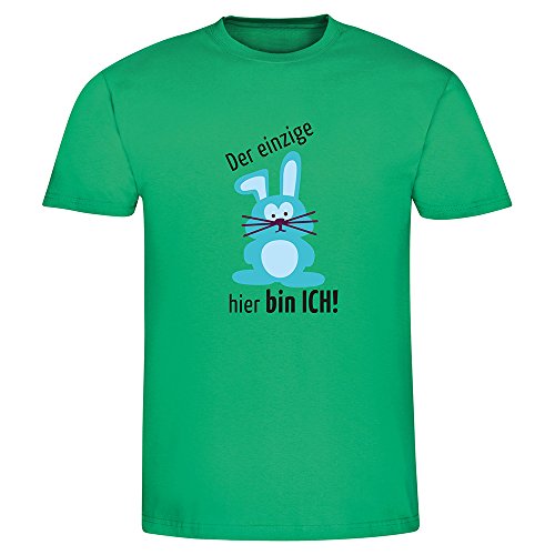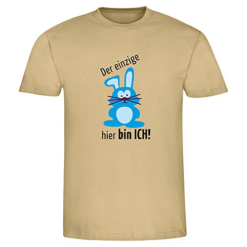 -. Binding : Textilien -. Brand : 4you Design -. Feature : T-Shirt für Männer - TOP Qualität, haltbarer Druck auf Ihrem T-Shirt / Waschbar bei 40 Grad, Bügeln auf Stufe 1, nicht für den Trockner geeignet / Strapazierfähige Stoffqualität:165g/m² -. IsAdultProduct : 0 -. ProductGroup : Apparel -. ProductTypeName : SHIRT -. Title : T-Shirt für Männer mit Druck "Der einzige Hase hier bin ICH! - tolles Ostergeschenk