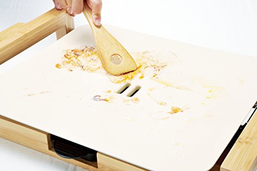 식재료의 맛이 좋다는 느낌을서랍고, 균일하게 맛있게 구이 올린다! ◆여분인 기름을 컷 세라믹 구멍난 특수 플레이트.중앙에 아 있던 두 개의 구멍에 여분인 기름이 떨어지는 바와 같이(하도록),완만한 경사를 붙였 신구조.식재료부터 나오는 여분인 기름을 컷 하고, 식재료의 맛이 좋다는 느낌을 충분하게서랍고 있습니다.◆고온 설계 최대250℃나와 단번에 조리.◆방에 냄새(향기)가 들어(나) 어려운서랍식받침접시(인수에 기름이 떨어지기 때문에 손질 간단.기름이 쟁반에 모이는 것(일)에 보다 직접 히터에 기름이 당첨되지 않아 연기가 출어려운 구조입니다.연기가 출어려운이 나와 방에 냄새(향기)가 붙는 문제도 경감됩니다.◆손질 간단 세라믹 코팅의 최대의 특징은 식재료가 회수 불능이 되기 어렵고, 사용 후가 느낌이 나는 눌은 것도 고생 없어 갑자기 1 닦아.플레이트는 받침대로 착탈가능,세척OK.※플레이트 에 대해서 예리한 것은 사용 하지 마십시오. / ■ 사양 ■컬러:화이트 본체크기(약):폭54.5×(길이)깊이35.0×높이9.0cm플레이트크기(약):폭40.0×(길이)깊이32.0×깊이2.5cm 소비전력:1400W 온도 조절 범위:보온~250℃ 코드장:1.5m 재질:받침대:대나무,플레이트:알루미늄(세라믹 코팅) / ※디자인상플레이트 본체에 테두리가 없습니다.사용 시에는 고온이 되기 때문에 주의하여 주십시오.사용중이나 사용 후 당분간은,본체(테두리/플레이트)고, 온도 조절 플러그 등의 고온부에 직접적으로 닿지 말아 주십시오.손질은 충분히 차가와지고 나서 행하고 하십시오.(고온부에 닿고, 화상의 우려가 있습니다.)