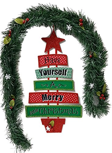 Retro Wooden Christmas Tree Sign & Hand Decorated Garland. “Have Yourself a Merry Little Christmas”