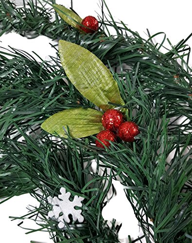 7.5' Handcrafted greenery garland is updated to coordinate in the modern style of the sign, and pops with red berries and lime green leaves. Swag over the sign, curl around a tabletop display, or line a mantle or banister, this garland is one you are going to want more of!