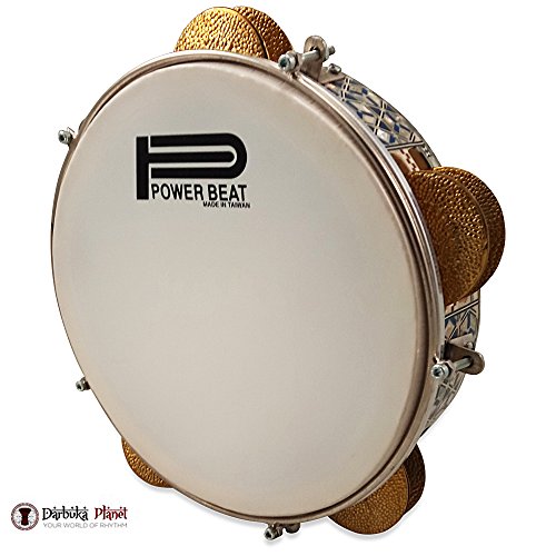 Product DescriptionThis amazing tambourine is covered with beautiful shells and has a synthetic power beat head.Comes with a case and a tuning key.Top quality tambourine!Tambourine head diameter: 10" (25cm)?0