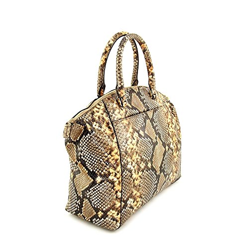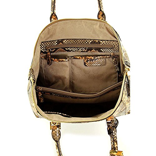 -. Brand : -. Color : PEANUT -. Department : womens -. EAN : 0889154027459 -. Feature : -16.5" X 11" X 6" / Handle Drop: 5 / Adjustable Drop: 18"-20" / Exterior: One Snap Pocket -Interior: One Zip Compartment, Three Open Pockets, One -. PackageQuantity : 1 -. ProductGroup : Shoes -. ProductTypeName : HANDBAG -. Size : 13" W x 8" H x 4" D -. Title : Riley Large Python Embossed-leather Satchel -. UPC : 889154027459