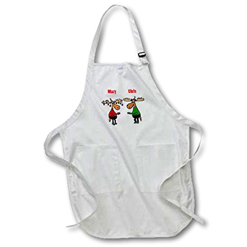 3dRose Funny Merry Christmoose with Mary and Chris Moose - Full Length Apron, 22 by 30-Inch, black, with Pockets (apr_223317_4)