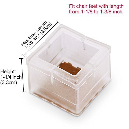 -. Binding : Kitchen -. Brand : Anwenk -. Color : 8 Pack Square -. Feature : Your Floor& Chair Protectors - These chair leg protectors allow your chairs to glide smoothly along the floor to prevent scratches, scrapes or harsh grating. They help protect tile and wood floors & furniture legs. / Will Not Fall Off - These flexible chair leg floor protectors grip the chair legs gently and securely and will NOT fall off.Better choice compare with self adhesive felt pads. Durable& Friction Free - With cushioned felt-padded bottom base to make your chair move easily and quietly across any floor. / Compatibility - These square chair leg floor protectors fit chair legs with length from 1-1/8 inch to 1-3/8 inch (3-3.5cm).(Square). PLZ CHECK SIZE BEFORE PURCHASE. / Material: Soft and durable silicone.100% nontoxic, safe for children & pets. Color: Clear& transparent-virtually invisible. Shape: square/cube. / Net weight: 0.6oz/pc. Package includes 8 pcs of chair leg protector caps(square). Easy Return.100% satisfaction guarantee. -. IsAutographed : 0 -. Label : Anwenk -. Manufacturer : Anwenk -. Model : Chair Leg Floor Protectors -. MPN : Chair-Leg-Pads-S-8 -. PartNumber : Chair-Leg-Pads-S-8 -. ProductGroup : Home -. ProductTypeName : HOME -. Publisher : Anwenk -. Size : 1 1/8"-1 3/8" -. Studio : Anwenk -. Title : Chair Leg Floor Protectors 8 Pack Silicone Chair Leg Protectors Leg Caps Furniture Protectors Table Chair Feet Protectors| Best Chair Leg Caps Tips, Square1 1/8"-1 3/8",Clear (8 Pack)
