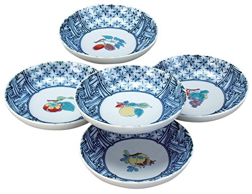 원본상품명: 九谷? 3.8?皿? 5枚セット 染小紋果???わり N62-09