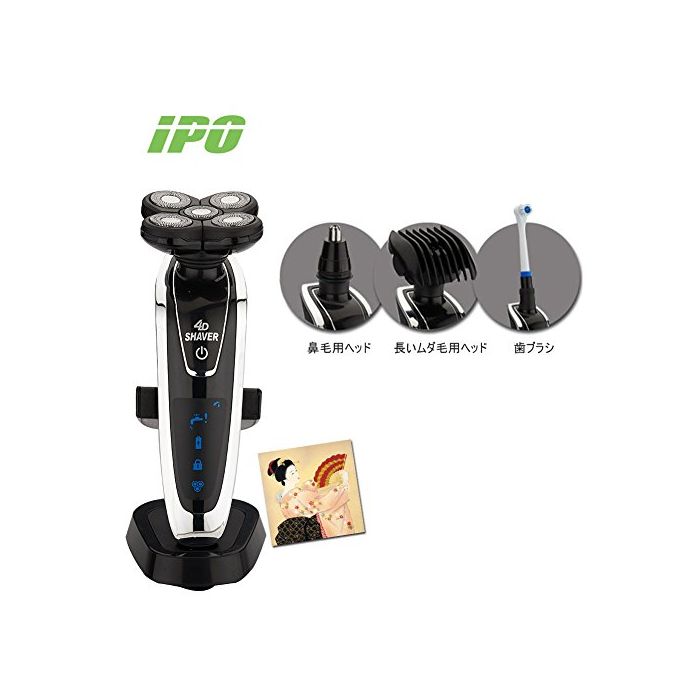 원본상품명: IPO 電動シェバ 4D回式シェバメンズシェバ水洗いシェバ ブラシ付ブラシアダプタ付鼻毛用ヘッド付用ヘッド付掃除ブラシ付 丸洗い可能お風呂剃り可コンパクトサイズ耐