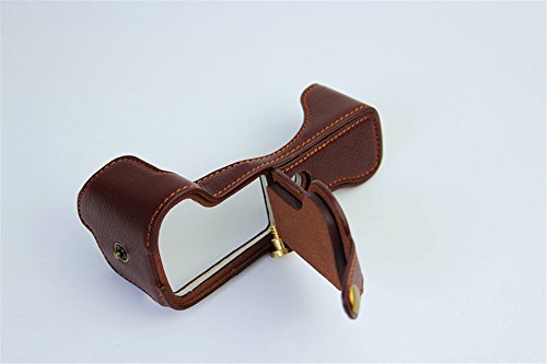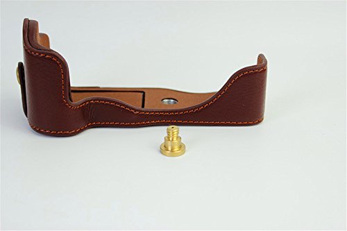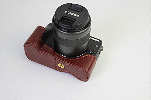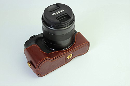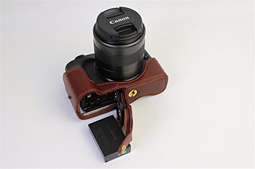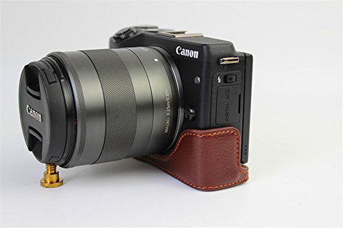 BolinUS Handmade Genuine Real Leather Half Camera Case Bag Cover for Canon EOS M3 Bottom Opening Version + Hand Strap -Coffee