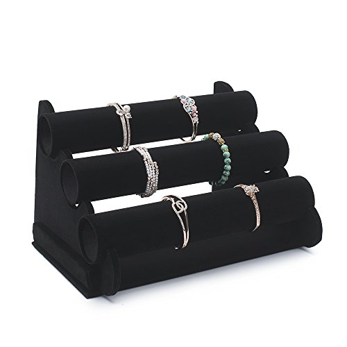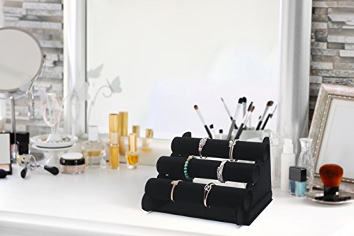 TWING 3 -TIER Black Velvet Bracelet Holder -Watch Necklace Jewelry Display Stand and Organizer Rack