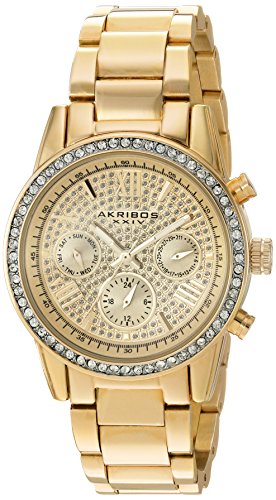 -. Title : Akribos XXIV Women's Swiss Quartz with Multi-Function Pave Sparkle Dial and Swarovski Crystal Accented Bezel on Gold-Tone Case and Gold-Tone Stainless Steel Bracelet Watch AK926YG