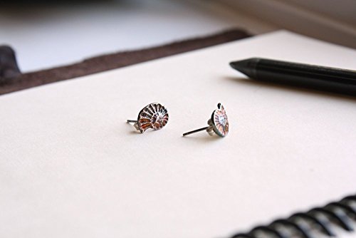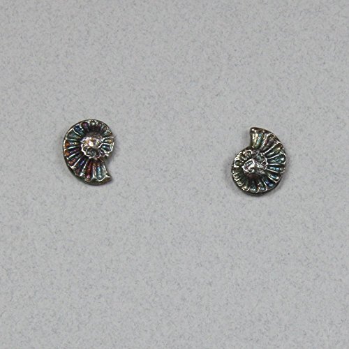 -. Title : Ammonite Stud Earring, Sterling, 3/8" Size, Iridescent Patina
