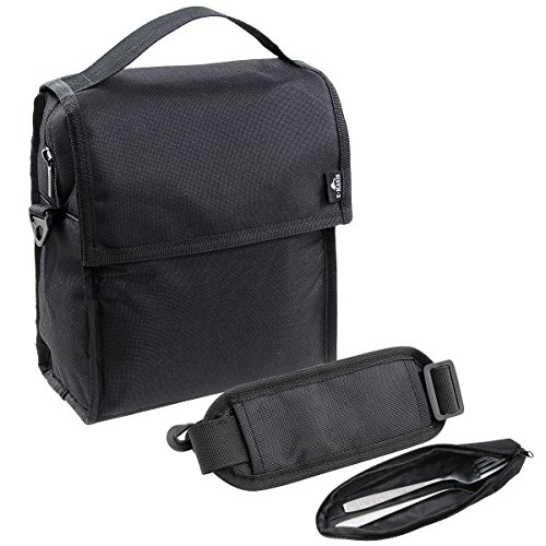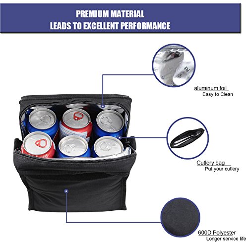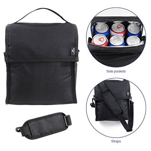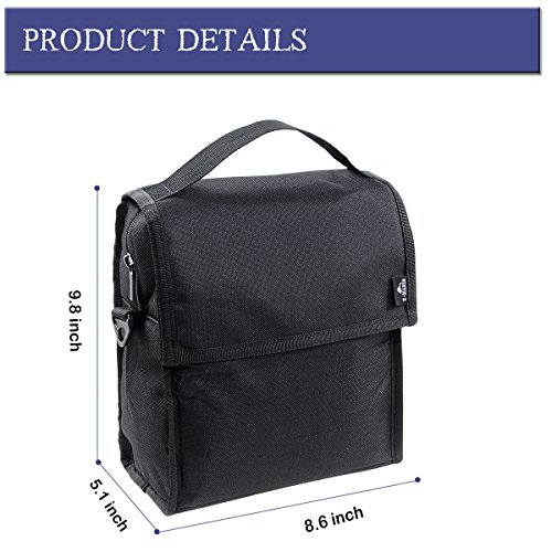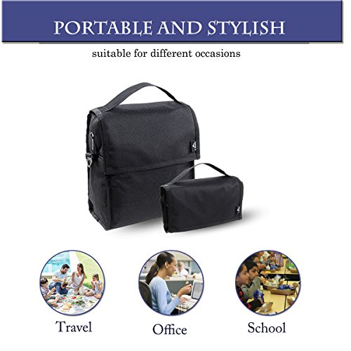Insulated Lunch Bag E-MANIS Collapsible Multi-Layers Thermal Insulated Oxford Lunch Tote Black Zip Closure with Shoulder Strap