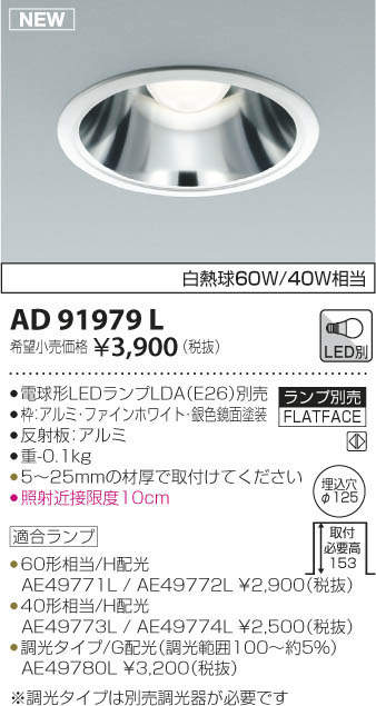 ●調光タイプ/G配光(調光範囲100~約5%)AE49780L \3,200(税抜)