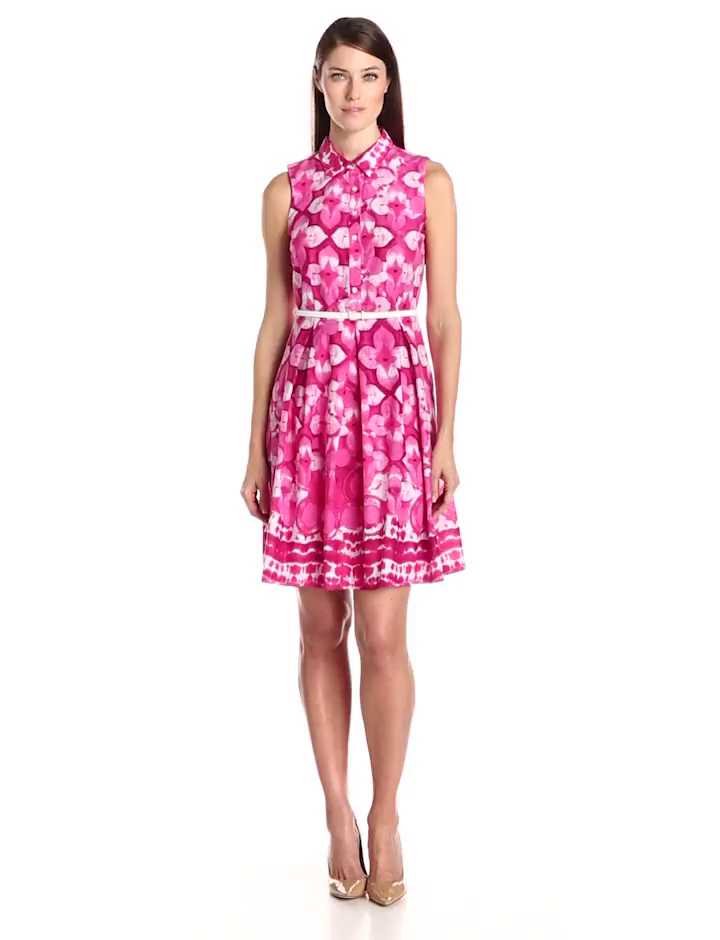 Nine West Women's Sleevekess Fit-and-Flare Printed Shirtdress