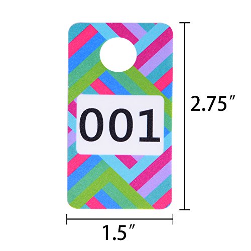 -. Feature : Package includes : 100 Pieces consecutive plastic numbers tags 001-100 (rounded corner) ,one side is normal the other side is backward numbers ,reverse numbers enable viewers to see the numbers correctly when watching your Live Sale ( Flexible and rounded corner wouldn't hurt you hands easy ) / Image:Reverse Mirror numbers so the viewer sees the number correctly when watching your live sale / Size (Approx) : 1.5 inch by 2.75 inch , with a 0.5 inch hanger hole, thickness is 0.05 cm/ 0.02 inch; The 4 corners have rounded corner , that won't hurt you hands or anything / Design (Twisted Rainbow) - Colorful vibrant stripes / Materail:Eco-friendly PVC-Waterproof Sweatproof Tearproof Sturdy Easy to Clean,so that you may use them long long time,1 year 2 years ...10years.