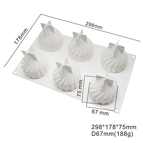 OUNONA 6 Lattices French Spiral Shaped Silicone Mold Baking Tools for Chiffon Cakes Mousse Ice Cream Chocolate