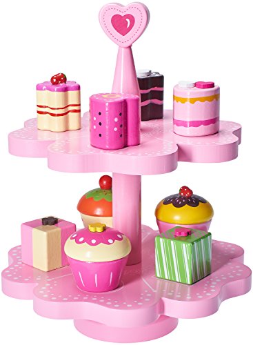 -. Title : Children's Wooden Magnetic Cake Stand - Tea Time Pretend Play By Dragon Drew (9 PC Set)