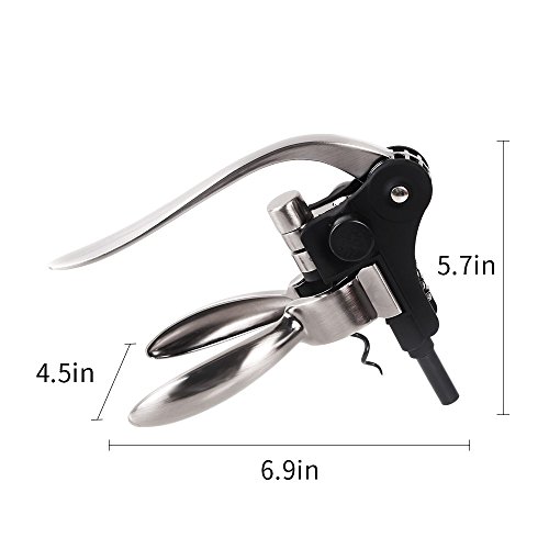 Product Description Specifications: Material :Zinc alloy? Color : Silver? Size:8.9 x 6.5 x 2.3 inches Package Includes: 1 x Rabbit Wine Bottle Opener 1 x Foil Cutter 1 x (Extra) Spiral Corkscrew