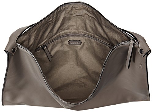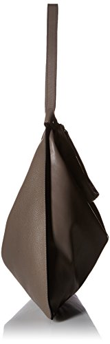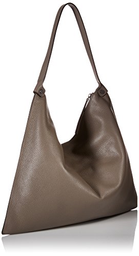 Discreet matte, gunmetal hardware and two leather types, smooth leather on one side and pebbled leather on the other
