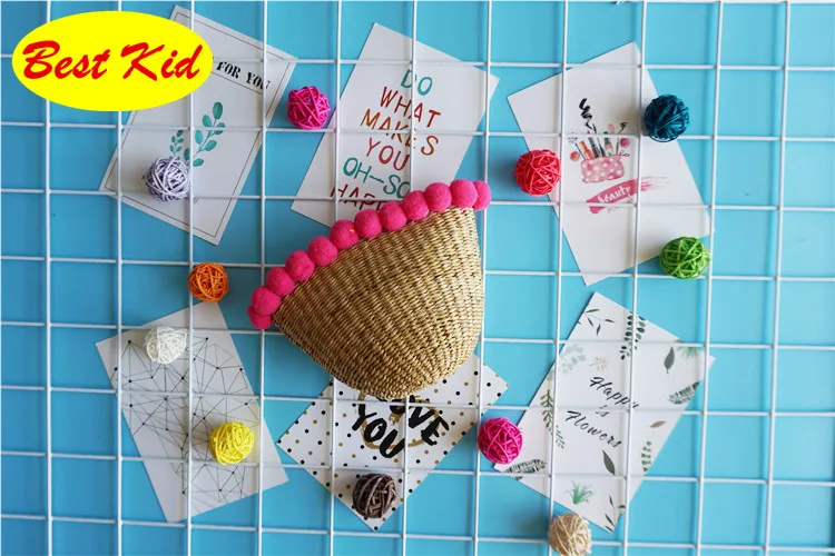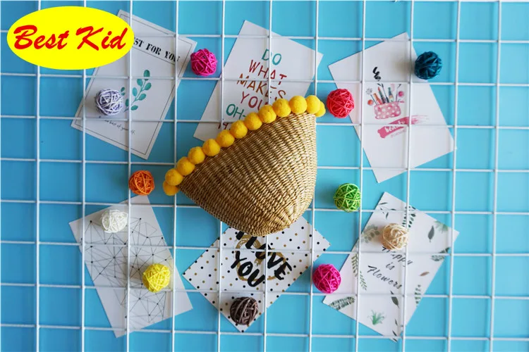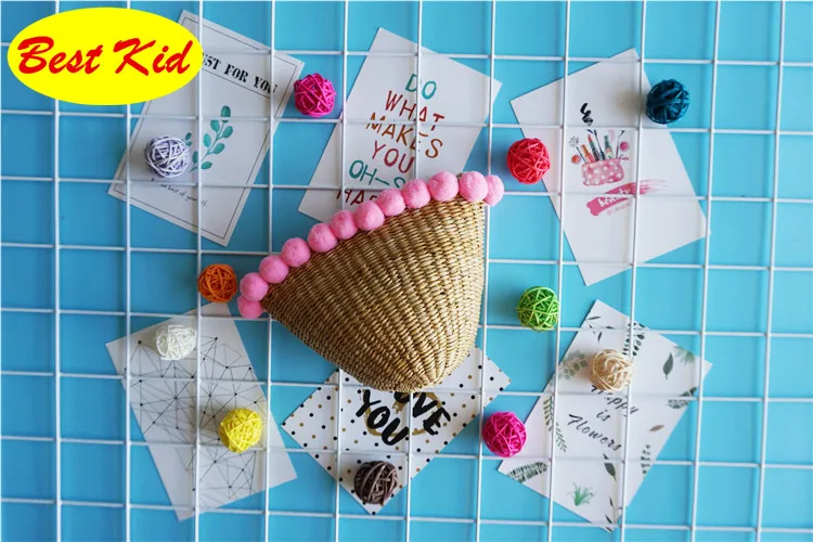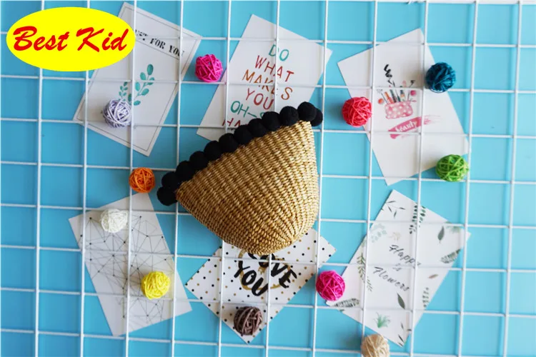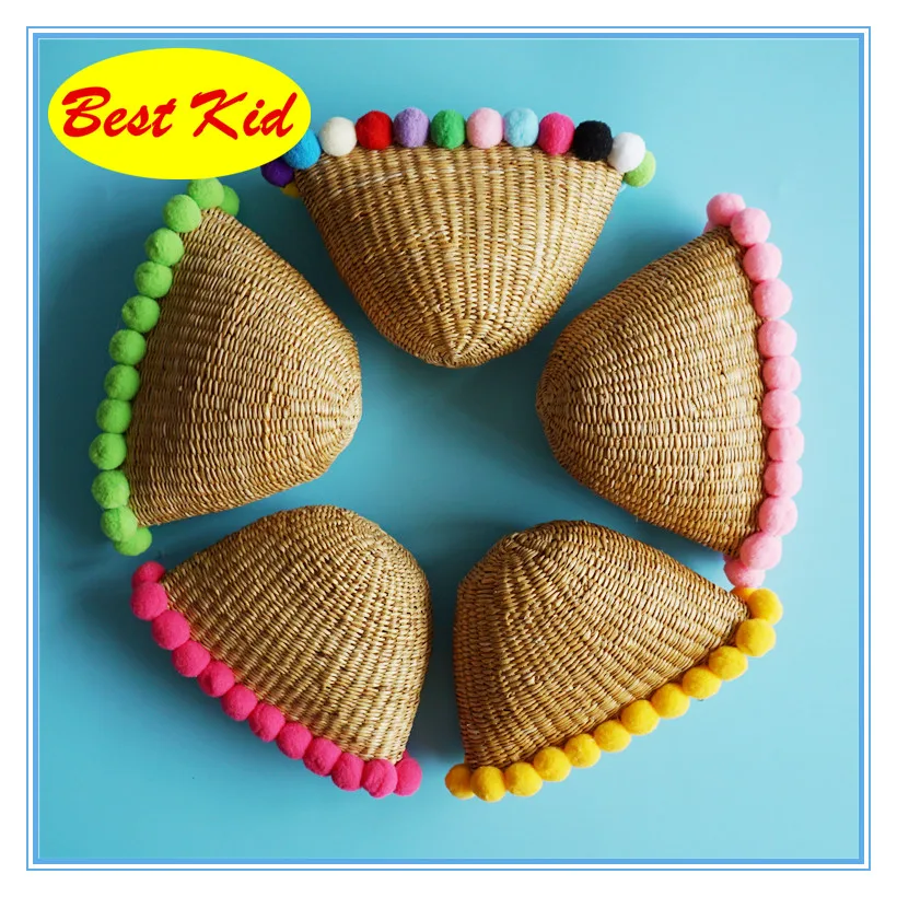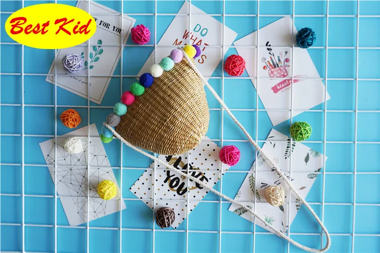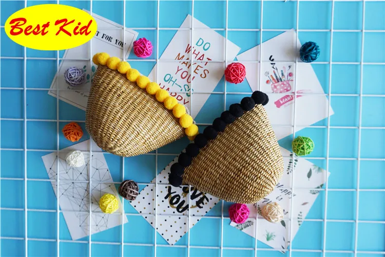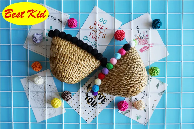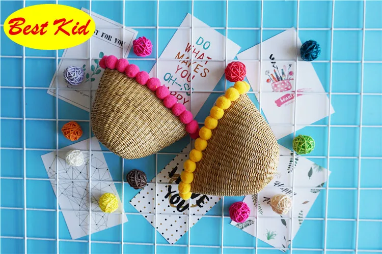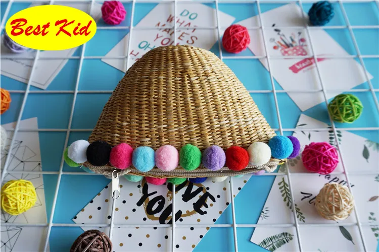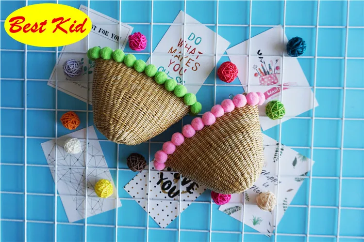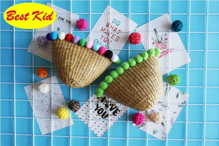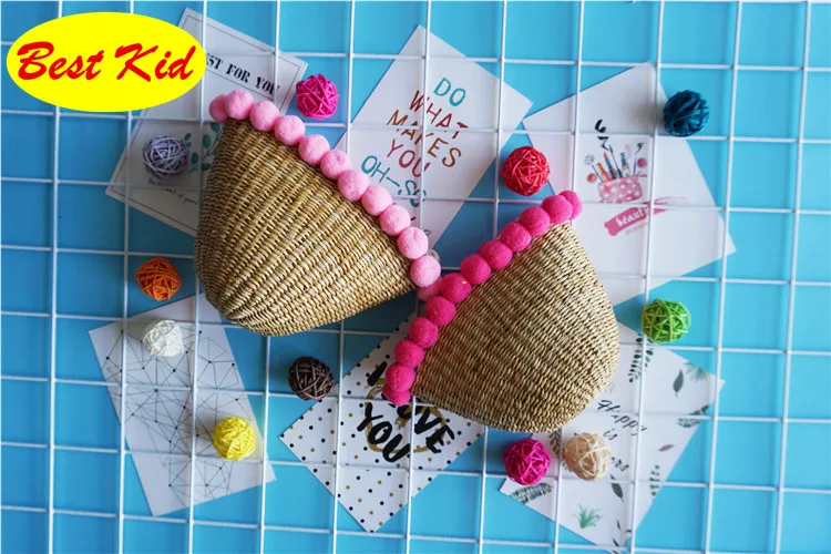 Style:Kids summer straw pom purse