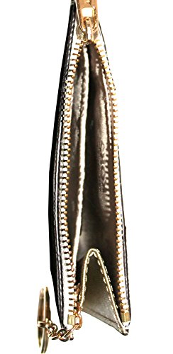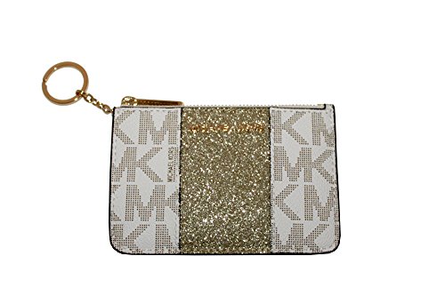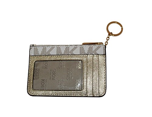 (MICHAEL Michael Kors)/Accessories/Wallets, Money Key Organizers/DIRECT FROM USA/MICHAEL KORS CENTER STRIPE SMALL TOP ZIP COIN POUCH ID MINI WALLET VANILA GOLD
