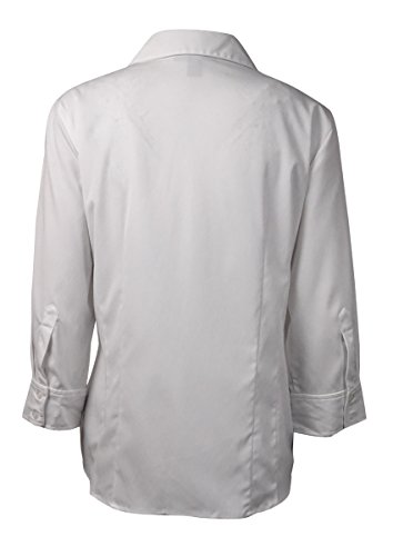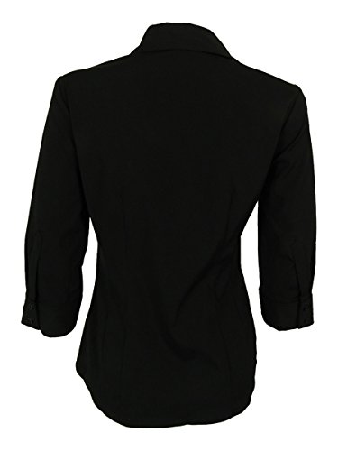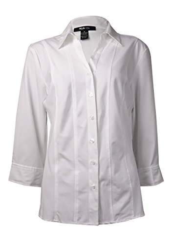 Product DescriptionTop features no lining, fold-over collar, 3/4 sleeves, seamed wrinkle resistant fabric, and front button closure.0