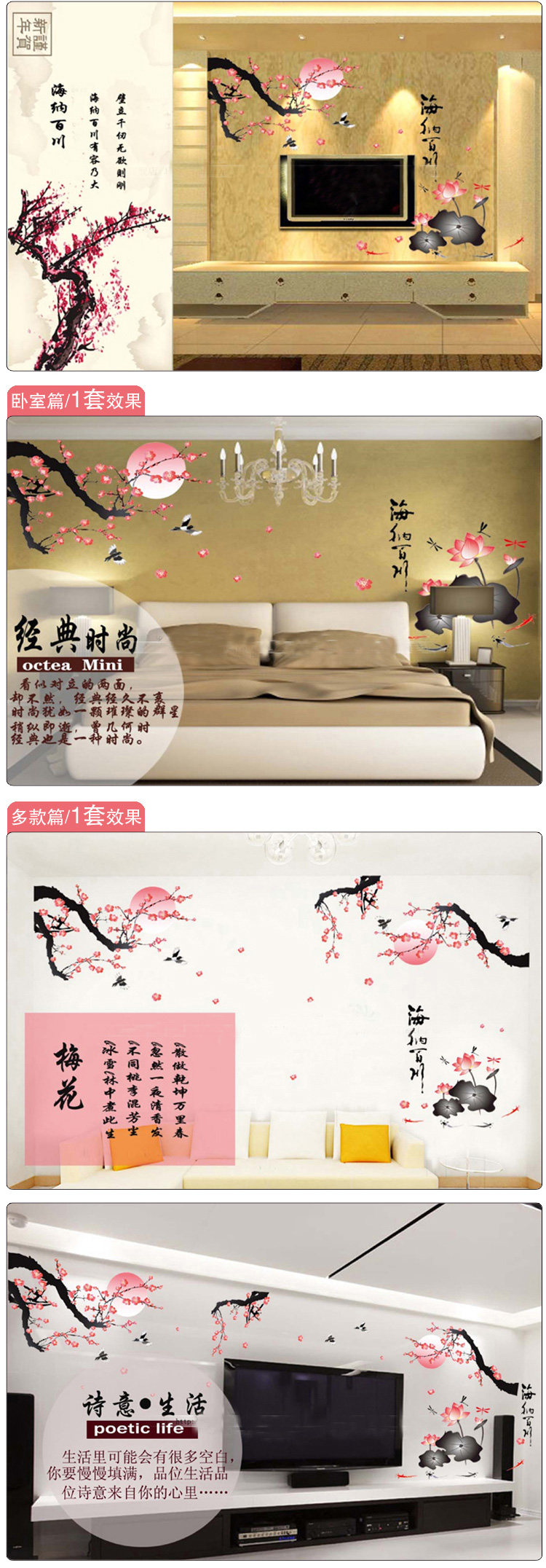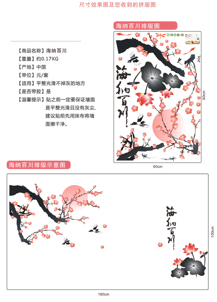 墙贴纸墙纸贴画中式墙壁纸自粘客厅卧室房间装饰背景墙