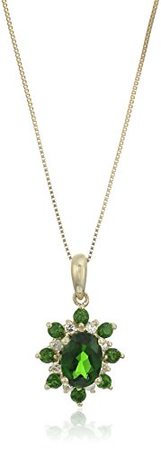-. Title : 10k Yellow Gold Chrome Diopside and Diamond Flower Pendant Necklace (1/10cttw, H-I Color, I2 Clarity), 18"