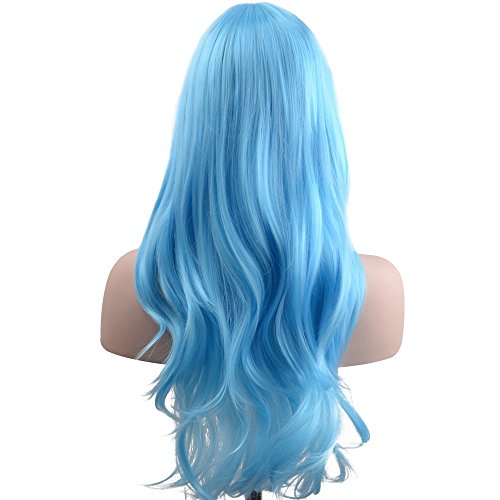 Ambielly 28" Wig Long Curly Wavy Women's Hair Cosplay Costume Wig (Light Blue)