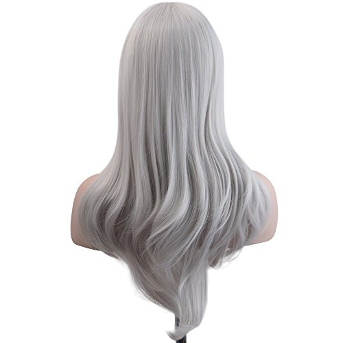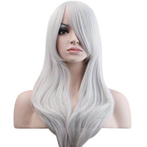 Ambielly 28" Wig Long Curly Wavy Women's Hair Cosplay Costume Wig (Silver White)